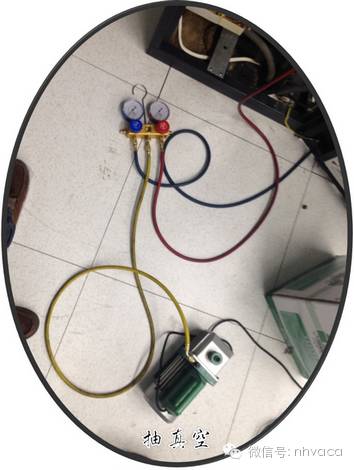 8.在系統(tǒng)真空時,應使用專業(yè)工具(真空泵)進行作業(yè),不得以氟排空進行,更不能不抽真空直接加注制冷劑進行調(diào)機。